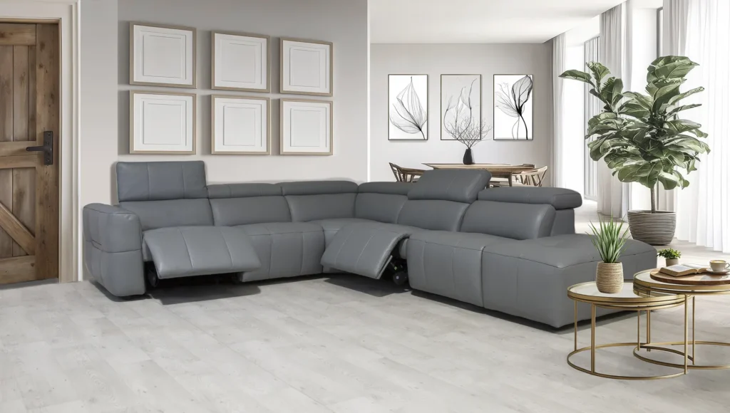 Ruben Corner Group with 3 power Recliners / Power Headrests in Leather Col Granite View Sofa Was: £4599 Now: £2999